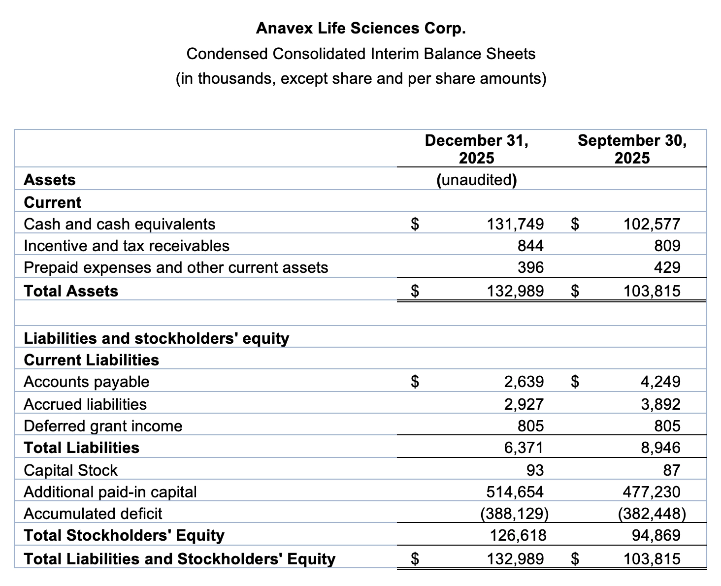 - Cash and cash equivalents of $131.7 million at December 31, 2025 compared to $102.6 million at September 30, 2025. The Company anticipates at its current cash utilization rate, an approximate cash runway of more than 3 years.