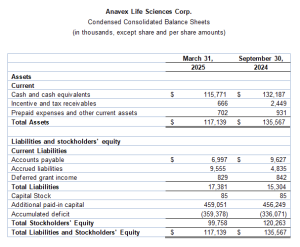 • Cash and cash equivalents were $115.8 million at March 31, 2025, compared to $132.2 million at year-end September 30, 2024. The Company anticipates a runway of approximately 4 years based on current utilization rates.