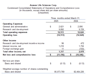 The financial information for the quarter ended March 31, 2025 should be read in conjunction with the Company’s consolidated financial statements, which will appear on EDGAR (www.sec.gov) and will be available on the Anavex website at www.anavex.com.